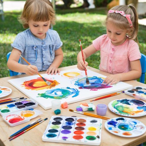 от 5-9 лет — техника рисования разными видами красок, работа с художественными материалами.